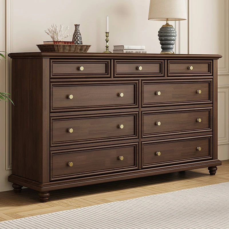 豪華なアメリカンスタイルの無垢材5段チェスト - 寝室やリビングルームにぴったり!収納力抜群で、クラシックかつモダンなデザインが魅力の新中式スタイルの収納家具です。あなたの空間を美しく演出します!