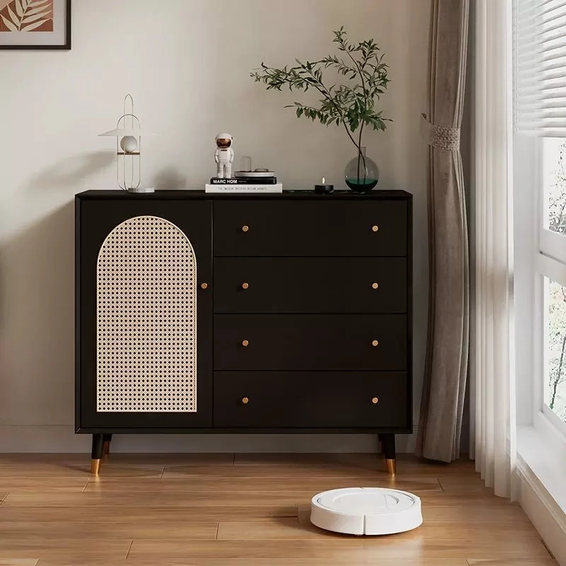 聖柏域のウッド&ラタンで作られたスタイリッシュなチェスト収納キャビネット—寝室やリビングにぴったりの5段引き出しタンス、軽やかなラグジュアリーエレメントをプラス!