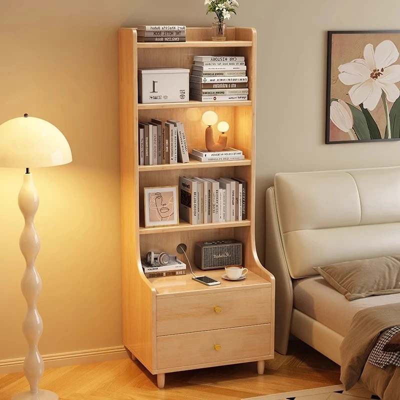 万羽ベッドサイドキャビネット&ラック - 本棚付き収納棚|多層収納で寝室もリビングもスッキリ!使いやすさとデザイン性を両立した家庭用収納家具。
