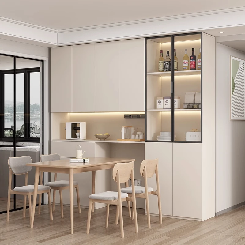 万羽岩板製のシンプルなリビング用壁面収納キャビネット - キッチンやワインを収納できる優雅なティーキャビネット、スタイリッシュな空間を演出!