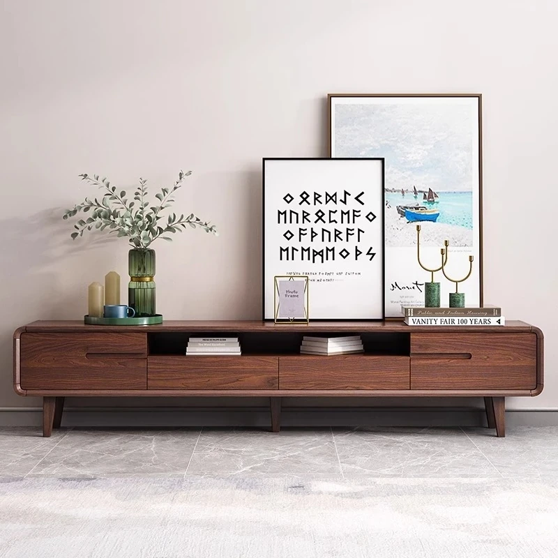 佐識の無垢材テレビボード|リビングルームにぴったりな新作収納一体型|小型住宅にも最適な天然木製デザインのコーヒーテーブル