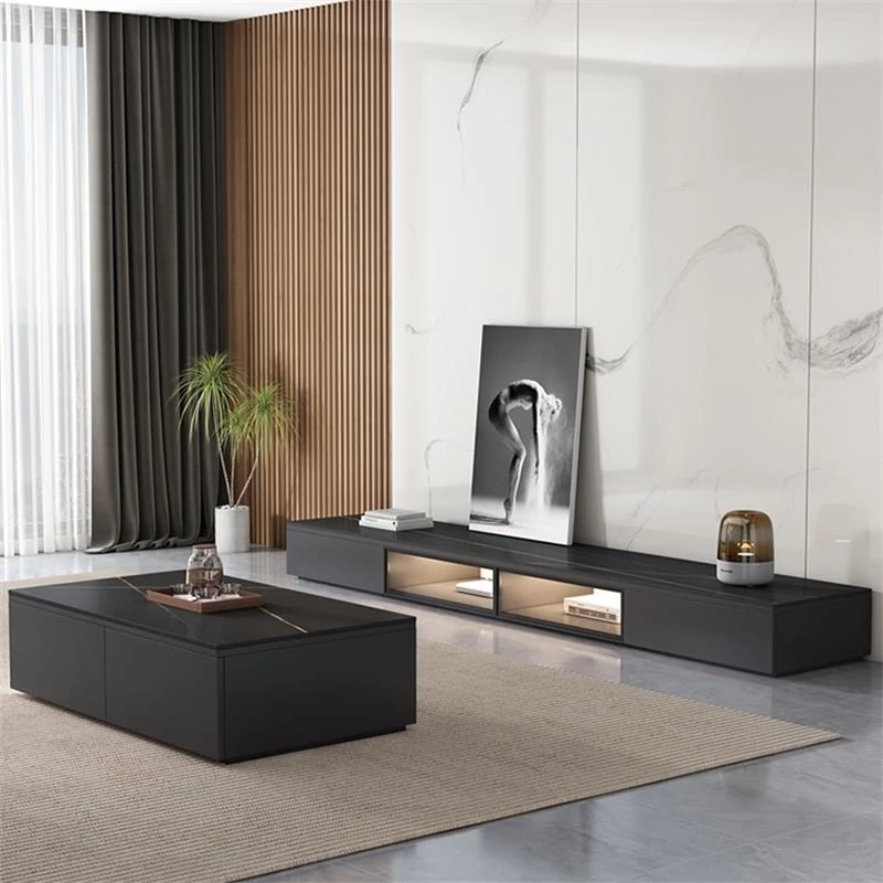 セントバリーの天然木製ロックボードテレビキャビネットとコーヒーテーブルのセット シンプルでモダンな軽奢スタイル 小さなお部屋にもぴったりなリビング用フロアキャビネット