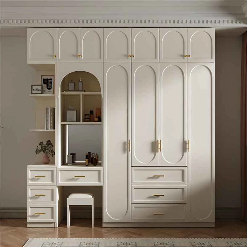 エイサン製・人気インフルエンサー推奨のクリーム風仕上げモダンスタイル寝室用完成品大型クローゼット - シンプルで洗練されたデザイン、狭いスペースでもぴったりフィットする実木製家具です!