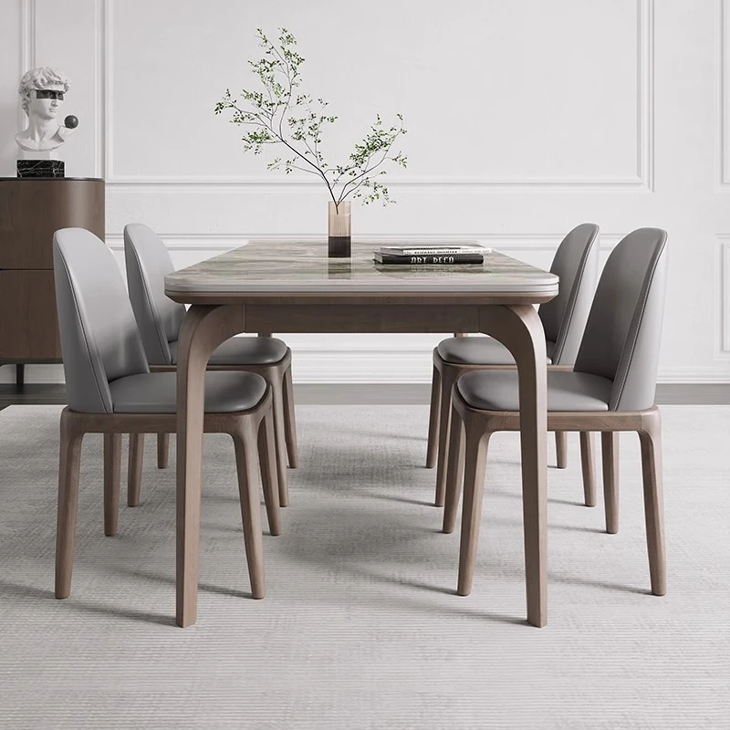 Premium Scandinavian Solid Wood Dining Table with Rock Slab Top – Elevate Your Dining Experience with Timeless Elegance!