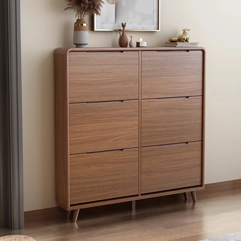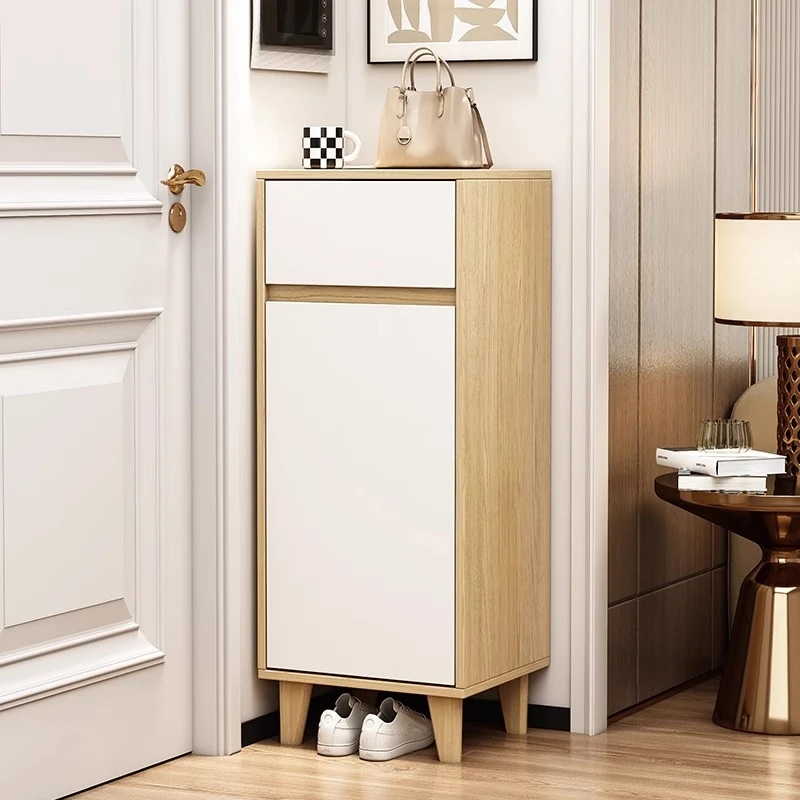 "Baishiyi All-Wood Minimalist Ultra-Narrow Shoe Cabinet for Home Entryway – Perfect for Small Spaces and Compact Hallways"