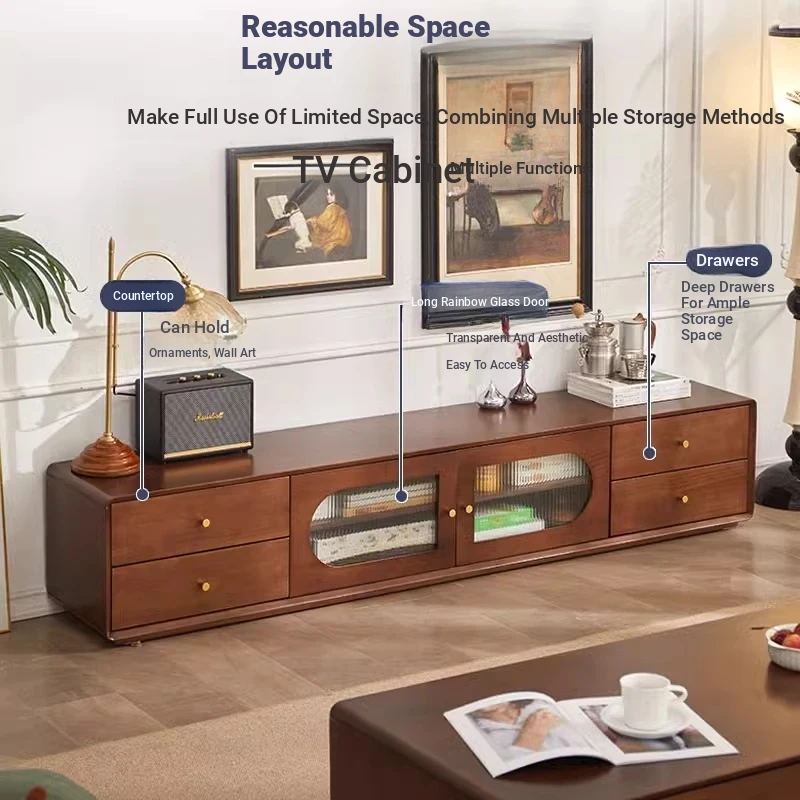 Modern Minimalist Solid Wood TV Cabinet and Coffee Table Set for Living Room – Walnut Finish, Ideal for Small Spaces