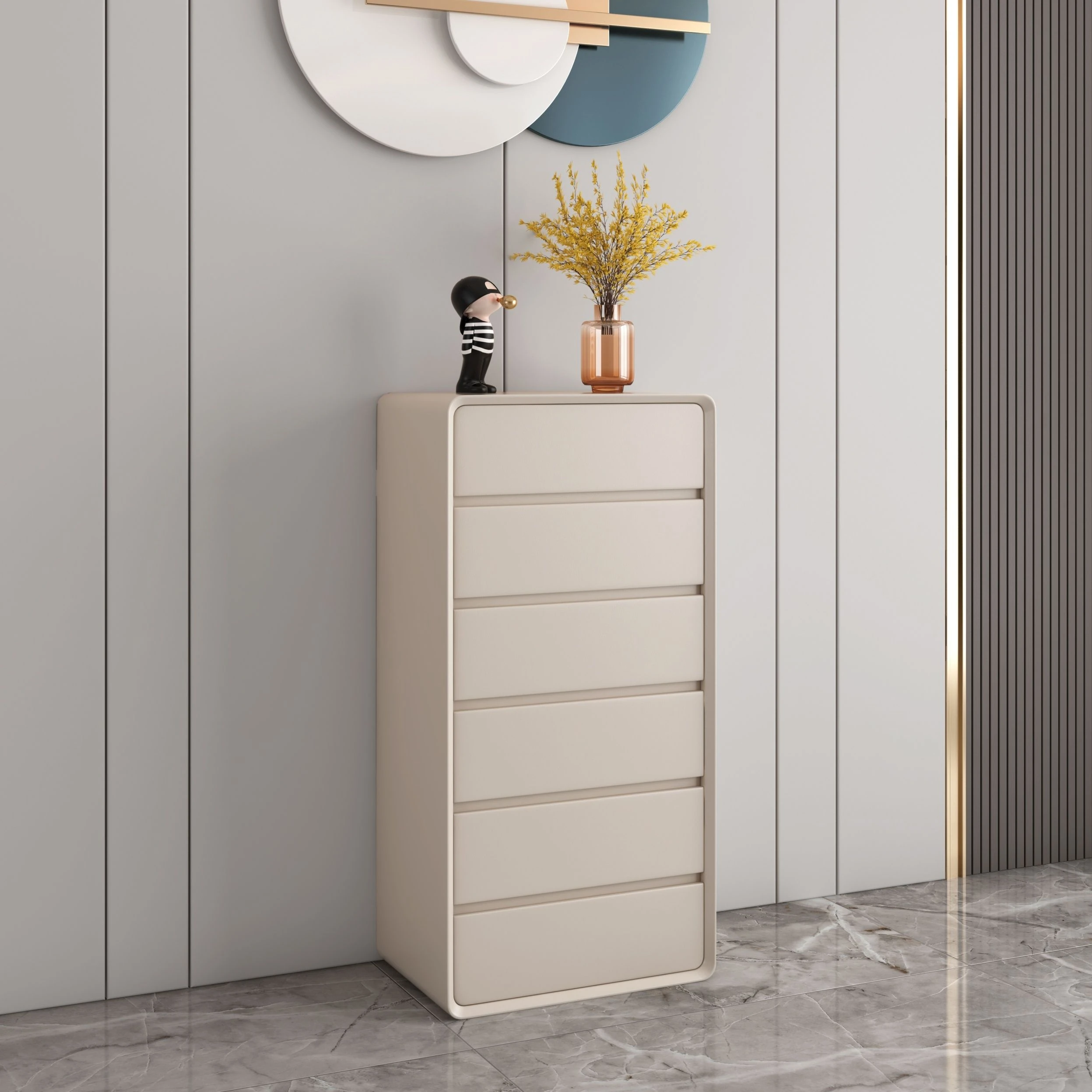 "Crafted Creamy Solid Wood Multi-Layer Storage Dresser - Modern Minimalist 10-Drawer Organizer for Living Room with Versatile Functionality"