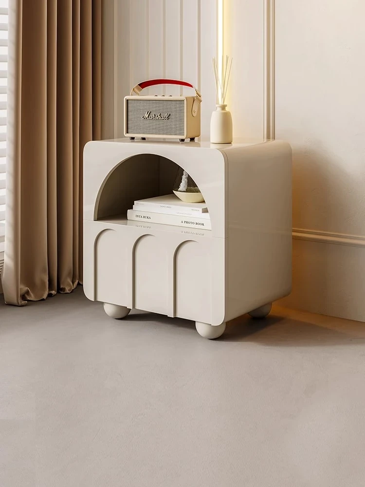Naiqiu Minimalist Cream Wood Nightstand - Stylish Bedroom Storage Cabinet with Unique Designer Touch, Perfect for Organizing Your Space